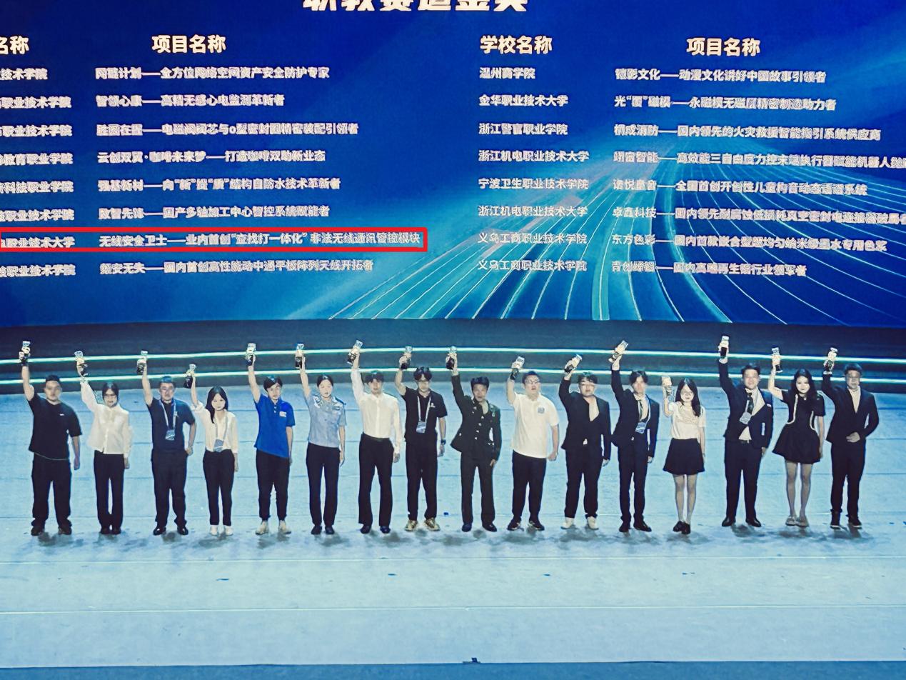 7月21日,由浙江省教育厅、共青团浙江省委员会、浙江省科学技术协会、浙江省学生联合主办“建行杯”浙江省国际大学生创新大赛(2024)落下帷幕。经过激烈角逐,现代信息技术学院创新创业项目“无线安全卫士——业内首创‘查找打一体化’非法无线通讯管控模块”荣获职教赛道金奖,取得历史性突破。