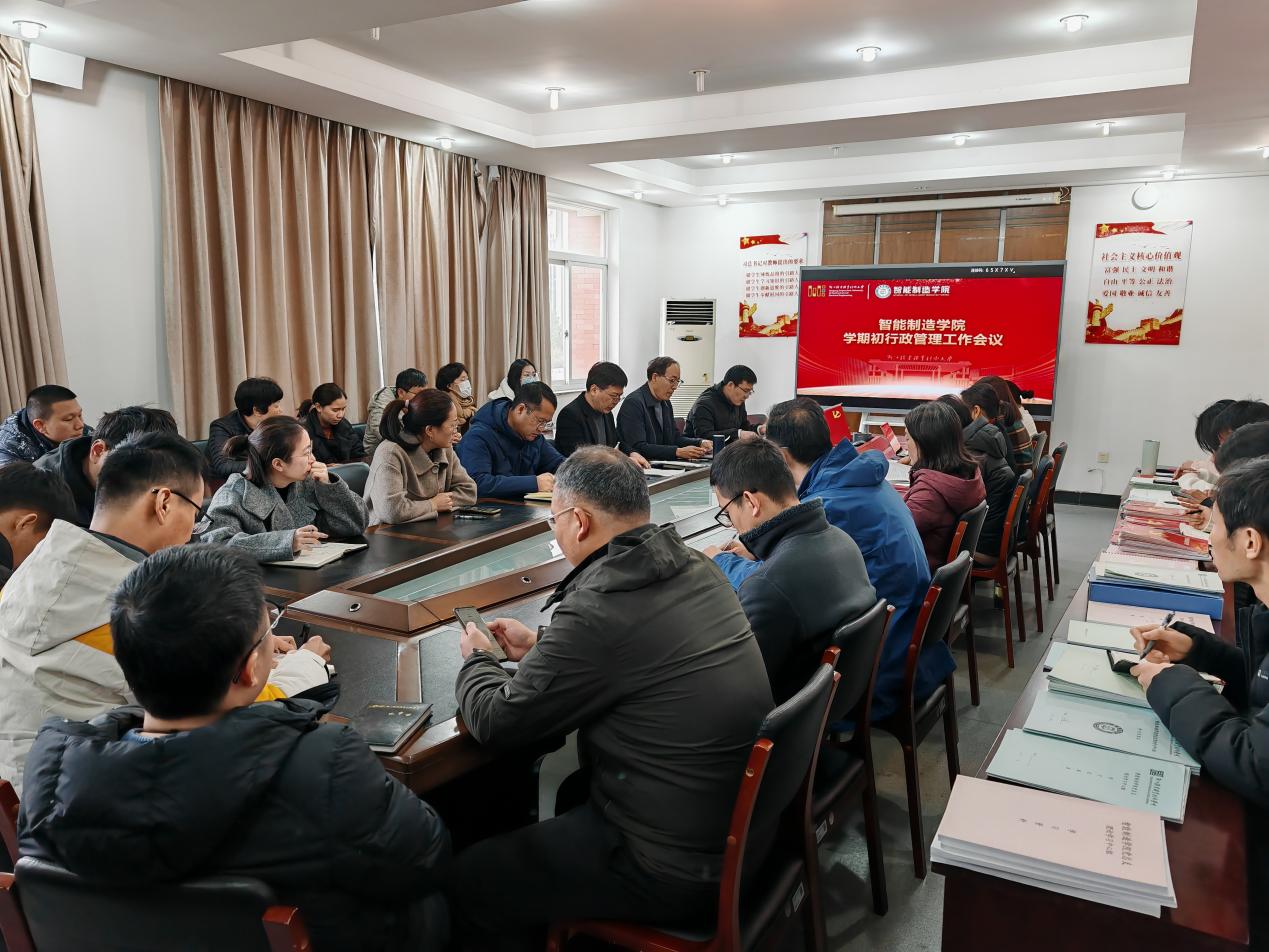 3月5日智能制造学院召开2025年春季学期初行政管理工作会议,学院领导班子成员,学院办、教学办、学工办、合作办全体成员,以及实训室管理员、各教研室主任参加会议。会上,学院党总支书记楼建忠教授主持学习贯彻习近平总书记在二十届中央纪委四次全会上的重要讲话精神和全省高校党的建设工作会议精神,传达了学校中层干部会上汤书记对各部门、各二级学院的工作要求。楼书记对学院工作提出几点要求,一是要强化思想引领,提高遵...