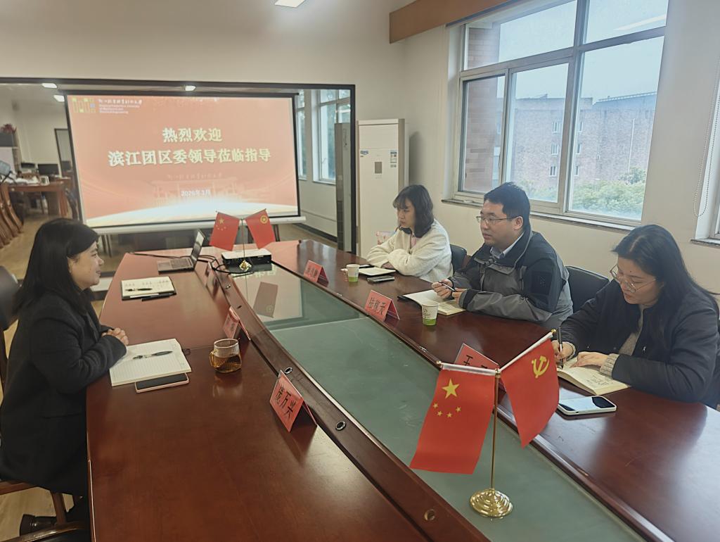 春潮涌动启新篇,校地协同促发展。为推动校地共青团工作深度融合,充分发挥高校青年人才优势,精准对接地方青年需求,3月17日上午,团滨江区委副书记陆稼天、办公室主任王飞、团干部姚逸静一行莅临学校交流共青团工作,校团委副书记姚婷主持会议。座谈会上,姚婷书记对团滨江区委一行的到来表示诚挚欢迎,对团滨江区委长期以来在青年实践、志愿服务、创新创业等方面给予学校的支持与指导表示衷心感谢。结合学校办学特色,姚婷从...