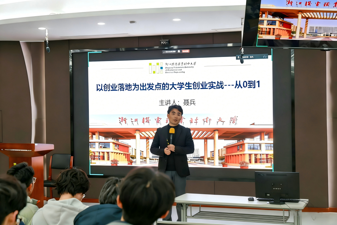 3月19日,由创新创业学院主办、大学生创新创业联盟承办的2026年度春季学期首场“创享大讲堂”在滨江校区顺利举办。本次活动特邀国家人社部网络创业培训项目技术专家、共青团中央“中国青年创业导师”聂兵担任主讲嘉宾,作题为《以创业落地为出发点的大学生创业实战——从0到1》的专题分享,全校各二级学院百余名师生通过线上线下相结合的方式聆听本次讲座。聂兵老师是教育部、人社部、团中央相关创业大赛评审专家,拥有二级创业...