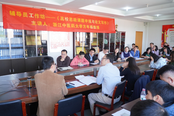 10月16日上午,学工部(学生处)在7号楼会议室组织了辅导员工作坊,特邀了浙江中医药大学护理学院党总支书记、副院长方年根教授作《高校思政课题申报与论文写作》专题讲座。学工部(学生处)人员、全体辅导员共50余人...