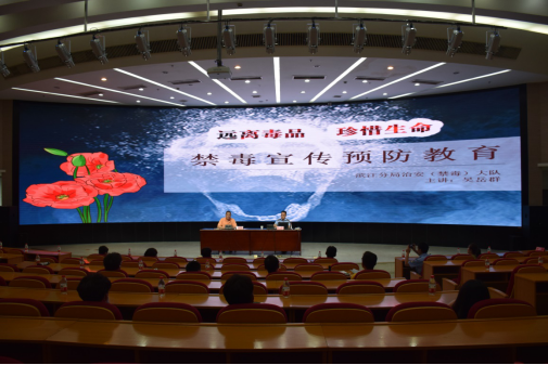 为加强大学生禁毒教育、引导青少年认识毒品危害、有效预防青少年涉毒违法犯罪,提高学生识毒、拒毒、防毒的能力和意识,近日,我校邀请了杭州市公安局滨江分局禁毒大队教导员吴岳群警官来学校为同学作《远离毒品、珍惜生命》的禁毒专题讲座,各分院安全辅导员、大二年级各班班长参加了现场讲座。首先,吴警官从新型毒品的介绍入手,给同学们一一科普了各类毒品的特性。随后吴警官通过高校真实的案例视频生动展示了毒品残酷的危害...